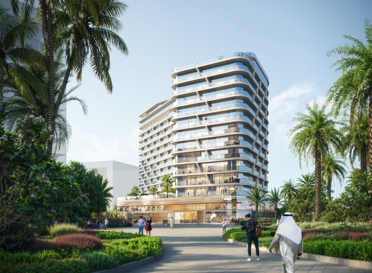 Landscape design plays an active environmental role, with extensive planting, shaded promenades, and podium-level greenery contributing to microclimate cooling and enhanced pedestrian comfort. Rooftop amenities and terraces are designed to balance leisure functions with shading strategies and wind mitigation, reinforcing outdoor usability while limiting heat accumulation.